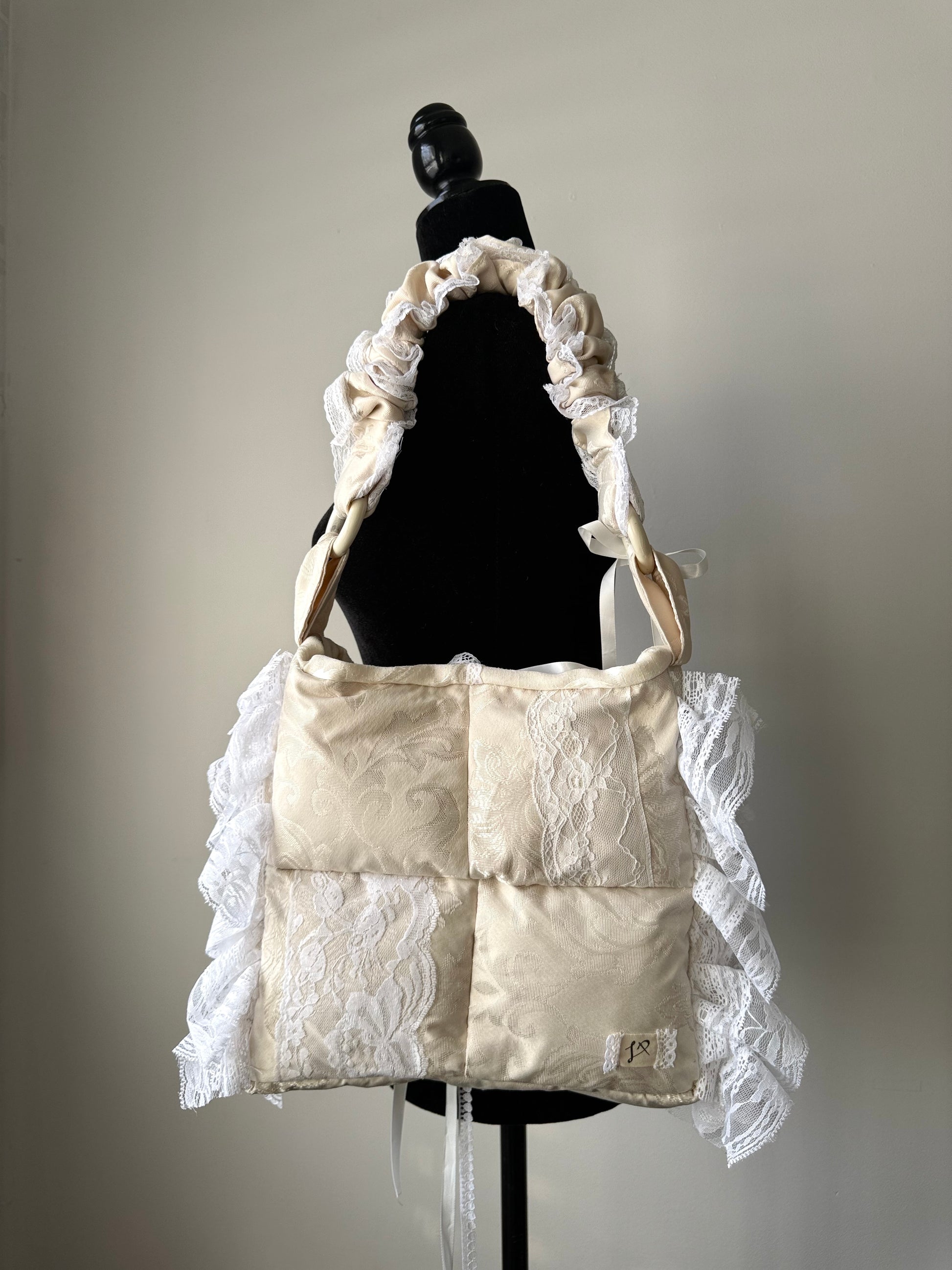 Entirely made from secondhand fabrics including curtains, bedsheets, tablecloths, and recycled fibre filling, The Pillow Purse is a 100% repurposed purse.